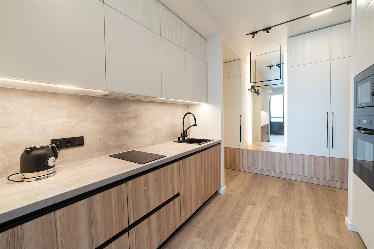 - может потребоваться увеличить пространство как техническими способами (например, демонтировать кладовку), так и визуально — используя специально подобранные светлые оттенки для финишной обработки;